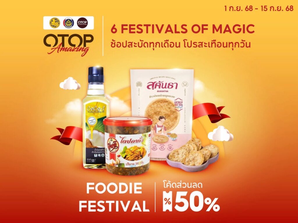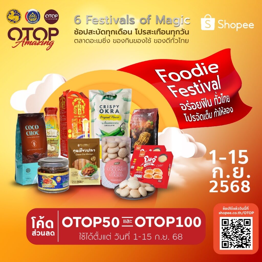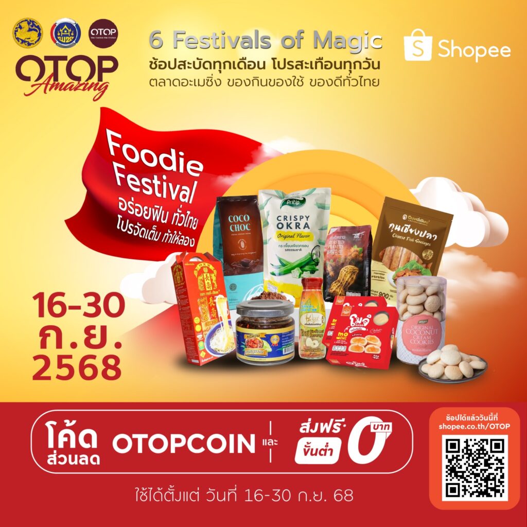 ทั้งนี้แคมเปญ “OTOP Amazing – Foodie Festival” ซึ่งเป็นแคมเปญที่ 2 ของโครงการจัดขึ้นระหว่างวันที่ 1-30 กันยายน 2568 บนช้อปปี้ ที่พร้อมรับโค้ดส่วนลดหลากหลาย รูปแบบสูงสุดถึง 50% ผู้สนใจสามารถติดตามและสั่งซื้อได้ที่ https://shopee.co.th/otop หรือ พิมพ์คำว่า OTOP หรือ โอทอป ในช่องค้นหาในแพลตฟอร์ม ช้อปปี้ ได้ตลอดทุกวัน 24 ชม.