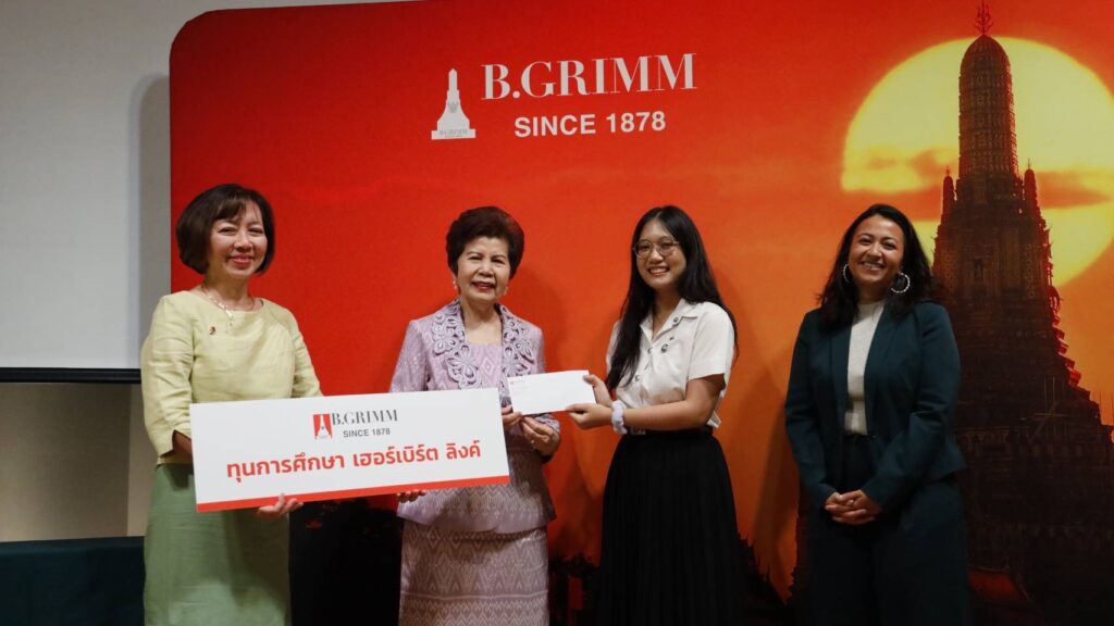 คุณหญิงทิพาวดี เมฆสวรรค์ ที่ปรึกษากิตติมศักดิ์ บริษัท บี.กริม เพาเวอร์ จำกัด (มหาชน) เป็นผู้แทนในการแจกรางวัลทุน “Herbert Link” ให้แก่นิสิต นักศึกษารวม 18 คน จาก 9 มหาวิทยาลัย ประจำปี 2568 ร่วมด้วย ศาสตราจารย์กิตติคุณ ดร.พรสรรค์ ถมังรักษ์สัตว์ นายกสมาคมไทย–เยอรมัน ผู้จัดงาน ดร.ไพบูลย์ ช่วงทอง ผู้แทนจากคณะกรรมการบริหาร มูลนิธิวัฒนธรรมไทย–เยอรมัน และคุณ Sweta Madhuri Kannan ผู้ช่วยทูตฝ่ายวัฒนธรรมและสื่อมวลชน สถานเอกอัครราชทูตเยอรมนี ร่วมเป็นเกียรติในงาน