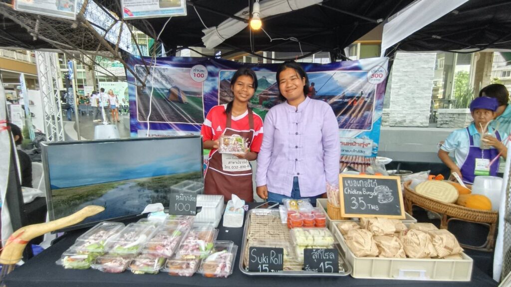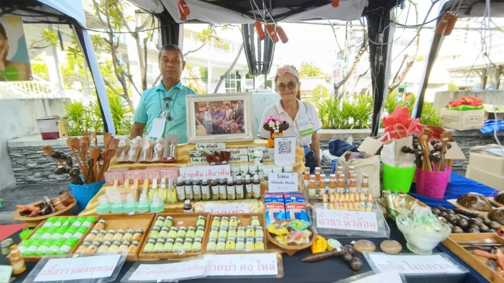 • โซนสาธิตและเวิร์คชอป (Demo & Workshop): เปิดโอกาสให้ผู้ร่วมงานได้สัมผัสกับภูมิปัญญาท้องถิ่นอย่างใกล้ชิด ผ่านกิจกรรมสาธิตสุดสนุก เช่น การสาธิตทำสิ่งประดิษฐ์วัสดุธรรมชาติ ได้แก่ กระเป๋ากระจูด เข็มกลัดผ้าย้อมสีห้อม ลิปบาล์มจากไขผึ้งชัณโรง การทำก้านไม้หอมจากน้ำมันหอมระเหยกลิ่นดอกไม้ไทย