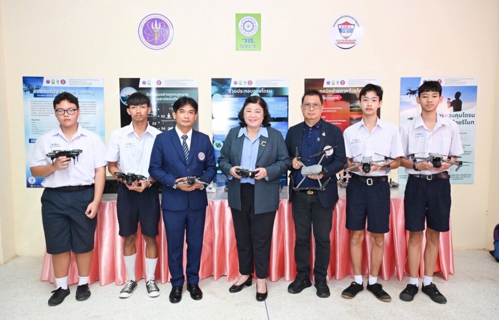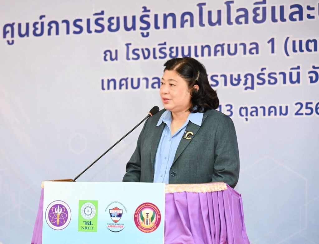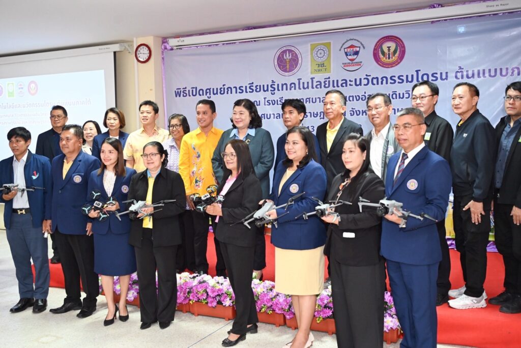วันที่ 13 ตุลาคม 2568 สำนักงานการวิจัยแห่งชาติ (วช.) กระทรวงการอุดมศึกษา วิทยาศาสตร์ วิจัยและนวัตกรรม โดย ดร.วิภารัตน์ ดีอ่อง ผู้อำนวยการสำนักงานการวิจัยแห่งชาติ เป็นประธานในพิธีเปิด “ศูนย์การเรียนรู้เทคโนโลยีและนวัตกรรมโดรน ต้นแบบภาคใต้” ในการนี้ได้รับเกียรติจาก นายทัศนัย เรืองนุ้ย รองนายกเทศมนตรีนครสุราษฎร์ธานี นายนิวัฒน์ กู้เขียว ผู้อำนวยการโรงเรียนเทศบาล 1 สุราษฎร์ธานี (แตงอ่อนเผดิมวิทยา) คณะผู้ทรงคุณวุฒิจาก วช. และ อาจารย์พิศิษฐ์ มิตรเกื้อกูล นายกสมาคมกีฬาเครื่องบินจำลองและวิทยุบังคับ พร้อมด้วยผู้บริหารสถานศึกษาในพื้นที่ ให้การต้อนรับ ณ โรงเรียนเทศบาล 1 สุราษฎร์ธานี (แตงอ่อนเผดิมวิทยา) จังหวัดสุราษฎร์ธานี