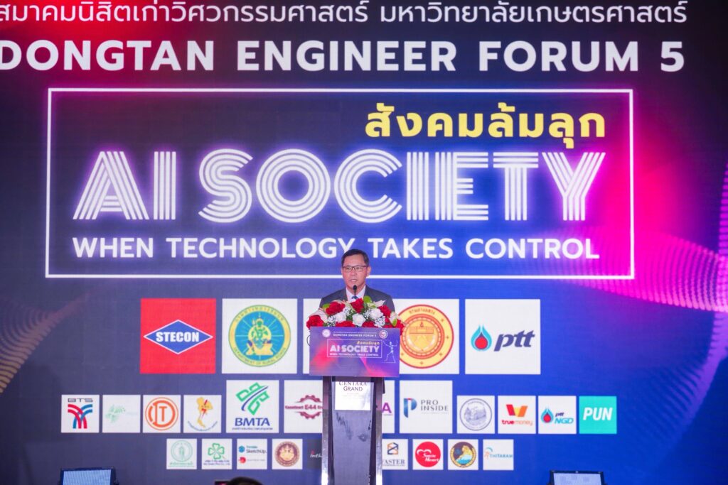 18 ตุลาคม 2568 — โรงแรมเซ็นทาราแกรนด์ แอท เซ็นทรัลเวิลด์ กรุงเทพฯ เวทีสัมมนา Dongtan Engineer Forum 5 “AI SOCIETY: สังคมล้มลุก” จัดโดย สมาคมนิสิตเก่าวิศวกรรมศาสตร์ มหาวิทยาลัยเกษตรศาสตร์ ได้รับความสนใจอย่างล้นหลามจากผู้เข้าร่วมกว่า 400 คน ทั้งจากภาครัฐ เอกชน และสถาบันการศึกษา ถือเป็นอีกหนึ่งความสำเร็จที่ยิ่งใหญ่ของเวทีที่รวมพลังของ “วิศวกร–นักคิด–นักสร้างสรรค์” เพื่อแลกเปลี่ยนมุมมองและจุดประกายแนวทางใหม่ต่ออนาคตของสังคมไทยในยุค AI