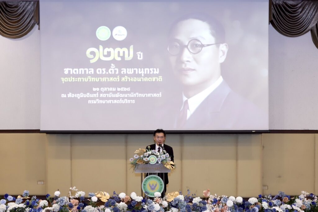 วันที่ 21 ตุลาคม 2568 กรมวิทยาศาสตร์บริการ (วศ.) กระทรวงการอุดมศึกษา วิทยาศาสตร์ วิจัยและนวัตกรรม (อว.) ได้รับเกียรติจาก ศาสตราจารย์ ดร.ศุภชัย ปทุมนากุล ปลัดกระทรวง อว. เป็นประธานเปิดงาน “127 ปี ชาตกาล ดร.ตั้ว ลพานุกรม” หนุนสร้างการแลกเปลี่ยนความรู้และประสบการณ์ของผู้เชี่ยวชาญในแวดวงวิทยาศาสตร์ ตลอดจนการปฏิบัติงานทางวิทยาศาสตร์ของประเทศ เพื่อให้สังคมไทยได้ตระหนักถึงคุณค่าของ “วิทยาศาสตร์” เป็นฐานในการสร้างความก้าวหน้าของประเทศชาติ พร้อมเปิดเวทีสัมมนาแลกเปลี่ยนประสบการณ์ด้านวิทยาศาสตร์จากผู้เชี่ยวชาญหลายภาคส่วน โดยได้รับความสนใจจากผู้บริหารหน่วยงาน อว. ผู้แทนจากภาครัฐ เอกชน สถาบันการศึกษา ตลอดจนอดีตข้าราชการเกษียณระดับบริหาร เข้าร่วมงานจำนวนมาก เพื่อร่วมแลกเปลี่ยนองค์ความรู้และแนวทางความร่วมมือทางวิทยาศาสตร์และเทคโนโลยีของไทยในอนาคต ณ ห้องประชุมภูมิบดินทร์ ชั้น 6 อาคารสถาบันพัฒนานักวิทยาศาสตร์ กรมวิทยาศาสตร์บริการ