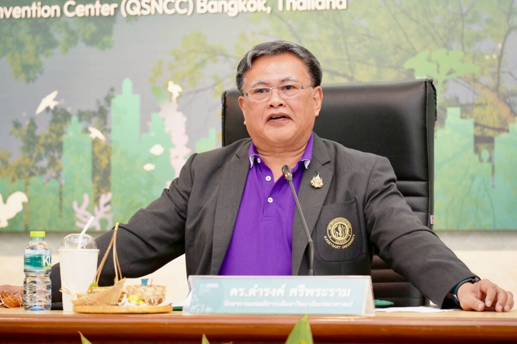 ดร.ดำรงค์ ศรีพระราม รักษาการแทนอธิการบดีมหาวิทยาลัยเกษตรศาสตร์ กล่าวถึงการมีส่วนร่วมและความร่วมมือระหว่าง มก. กับ วช. และหน่วยงานเครือข่ายระดับชาติและนานาชาติ โดย มก. ได้มุ่งนำองค์ความรู้ งานวิจัย และการเรียนการสอนด้านความหลากหลายทางชีวภาพมาผนึกกำลังกับทุกภาคส่วน เพื่อสร้างความเข้าใจและความร่วมมือในทุกมิติ ทั้งระดับชาติและนานาชาติ พร้อมกล่าวถึงนิทรรศการเฉลิมพระเกียรติ 70 พรรษา สมเด็จพระกนิษฐาธิราชเจ้า กรมสมเด็จพระเทพรัตนราชสุดาฯ สยามบรมราชกุมารี ที่ มก. ร่วมกับ วช. จัดขึ้นภายใต้แนวคิด “มรรคาแห่งความสมดุล : วัฏจักรความหลากหลายทางชีวภาพกับการอนุรักษ์อย่างยั่งยืน” โดยหวังเป็นอย่างยิ่งว่าการประชุมในครั้งนี้จะทำให้ประชาชนได้เห็นถึงความสำคัญของทรัพยากรธรรมชาติและเรียนรู้ที่จะใช้ทรัพยากรอย่างรู้คุณค่าเพื่อการอนุรักษ์ที่ยั่งยืน