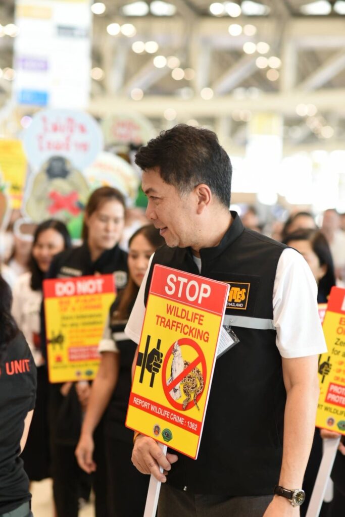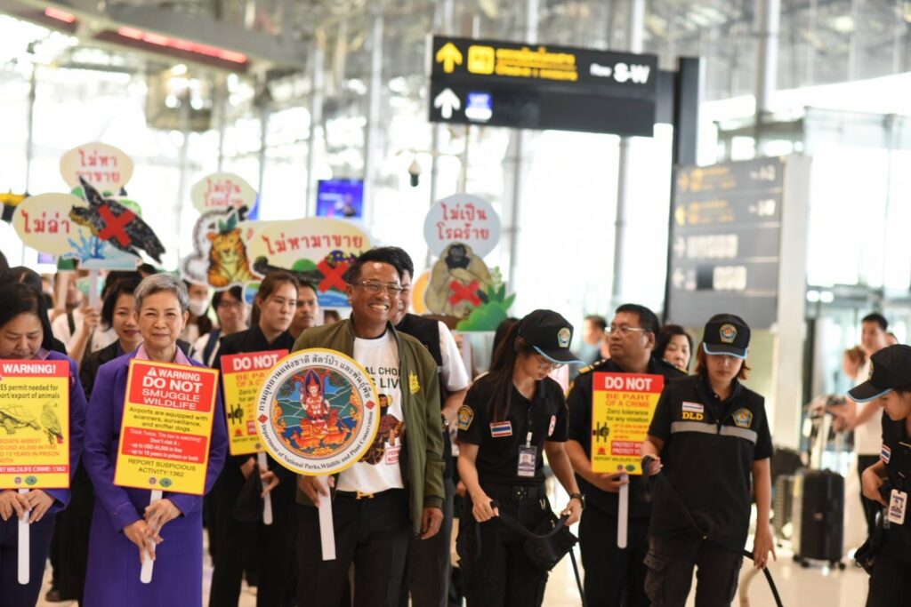 ด้าน นายอรรถพล เจริญชันษา อธิบดีกรมอุทยานแห่งชาติ สัตว์ป่า และพันธุ์พืช กล่าวว่า ตามนโยบายของท่านสุชาติ ชมกลิ่นจึงได้เร่งประชาสัมพันธ์เชิงรุกแก่กลุ่มนักท่องเที่ยวเป้าหมาย เพื่อสร้างความรู้ความเข้าใจและความตระหนักถึงผลกระทบจากการค้าสัตว์ป่าและพืชป่าผิดกฎหมาย ซึ่งส่งผลกระทบทั้งต่อสิ่งแวดล้อม เศรษฐกิจ และความมั่นคงของประเทศ โดยได้จัดกิจกรรมเดินรณรงค์ “หยุดการค้าสัตว์ป่าผิดกฎหมาย” ขึ้นที่ท่าอากาศยานสุวรรณภูมิ ร่วมกับเครือข่าย Thailand-WEN (Thailand Wildlife Enforcement Network) ที่มีหน่วยงานความร่วมมือทั้ง บริษัท ท่าอากาศยานไทย จำกัด (มหาชน) กรมศุลกากร กรมประมง กรมวิชาการเกษตร กรมปศุสัตว์ กองบังคับการปราบปรามการกระทำความผิดเกี่ยวกับทรัพยากรธรรมชาติและสิ่งแวดล้อม (บก.ปทส.) รวมถึงสายการบินต่าง ๆ ได้แก่ การบินไทย แอร์อินเดีย (Air India) อินดิโก (IndiGo Airlines) และเวียตเจ็ทแอร์ (VietJet Air) ในการรณรงค์เชิงรุกร่วมกันเพื่อสกัดกั้นการลักลอบค้าสัตว์ป่าระหว่างประเทศไทยและประเทศอินเดีย ซึ่งการรณรงค์ครั้งนี้ ยังเป็นการเสริมภาพลักษณ์ของประเทศไทยในฐานะผู้นำด้านการบังคับใช้กฎหมายเกี่ยวกับสัตว์ป่าในภูมิภาคอาเซียน และย้ำถึงความร่วมมืออันแข็งแกร่งของทุกภาคส่วนในการยุติการค้าสัตว์ป่าผิดกฎหมายอย่างยั่งยืน