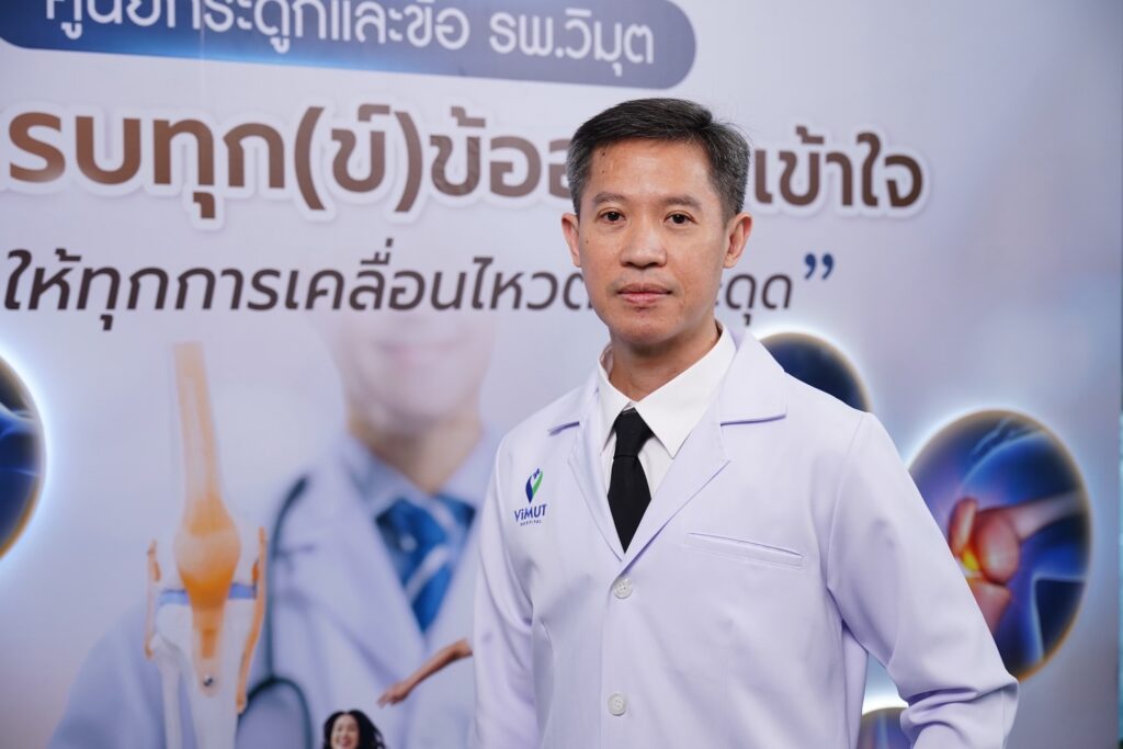 “ศูนย์กระดูกและข้อ รพ. วิมุต พร้อมดูแลรักษาทุกข้อตั้งแต่กระดูกคอถึงเท้า โดยศูนย์แห่งนี้ครอบคลุมการรักษาทุกกลุ่มโรคของระบบกระดูกและข้อ ตั้งแต่โรคข้อเสื่อม โรคกระดูกพรุน หมอนรองกระดูกทับเส้นประสาท เอ็นอักเสบ ไหล่ติด รวมถึงอุบัติเหตุจากการเล่นกีฬา ทั้งยังมีแพทย์เฉพาะทางสำหรับกลุ่มมะเร็งกระดูกและโรคกระดูกในเด็กโดยทุกเคสจะได้รับการประเมินอย่างละเอียดก่อนวางแผนรักษา เพื่อให้การดูแลเป็นไปอย่างแม่นยำและลดการผ่าตัดที่ไม่จำเป็น ทั้งนี้ เราจะพิจารณาการตรวจคัดกรองในผู้ป่วยแต่ละรายตามความเหมาะสม เช่น การตรวจมวลกระดูก การปรับท่าทางในชีวิตประจำวัน อีกทั้งยังมีบริการ Telemedicine สำหรับผู้ที่ต้องการปรึกษาแพทย์เบื้องต้น”