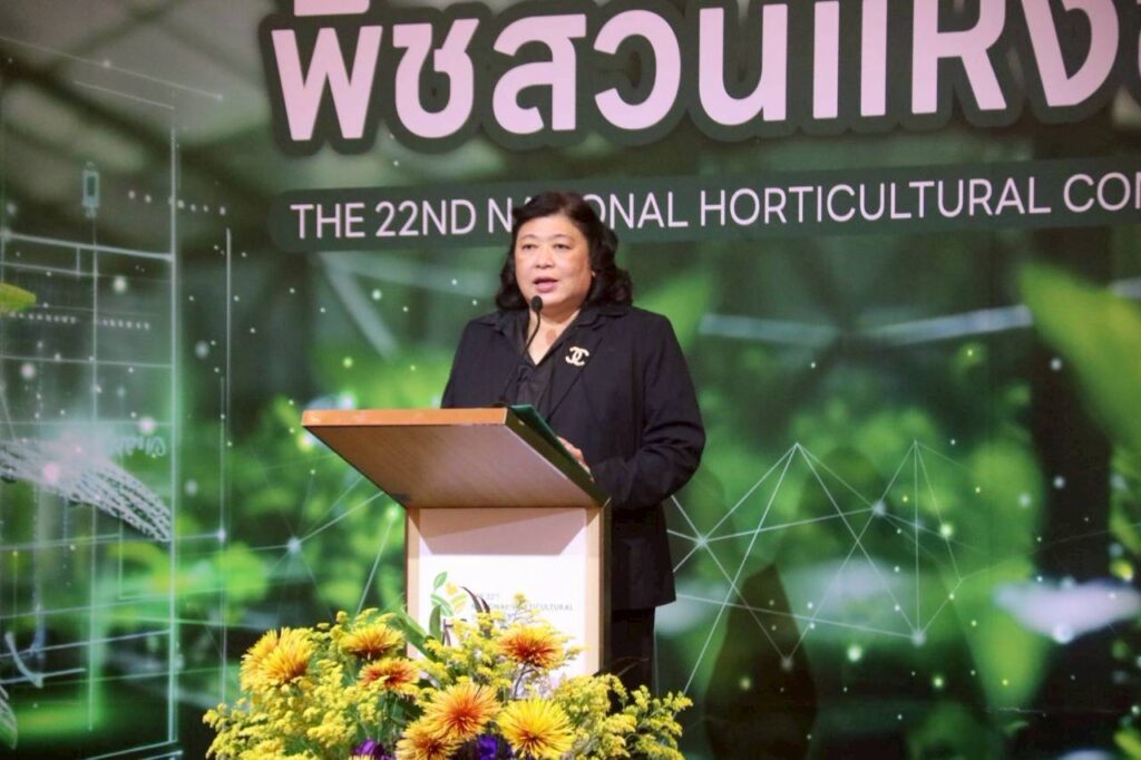 ขณะที่ คุณกนกรัตน์ สิทธิพจน์ รักษาการนายกสมาคมพืชสวนแห่งประเทศไทย กล่าวว่า การประชุมวิชาการพืชสวนแห่งชาติเป็นเวทีสำคัญที่สะท้อนถึงความร่วมมือของทุกภาคส่วนในการพัฒนาองค์ความรู้และนวัตกรรมด้านพืชสวนของไทย โดยสมาคมมีเป้าหมายที่จะผลักดันให้ประเทศไทยเป็น “ศูนย์กลางองค์ความรู้ด้านพืชสวนในภูมิภาคอาเซียน” ผ่านการบูรณาการเทคโนโลยีและ AI เข้ากับการผลิตเชิงพาณิชย์ เพื่อเพิ่มขีดความสามารถในการแข่งขันของเกษตรกรไทย