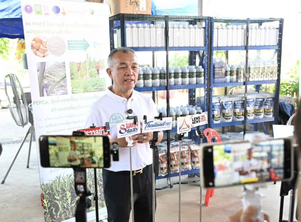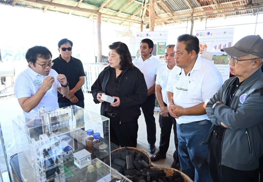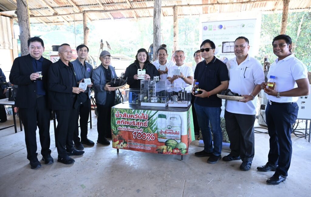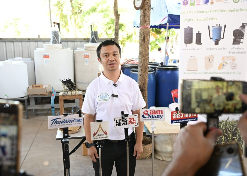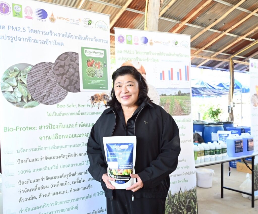 ดร.วิภารัตน์ ดีอ่อง ผู้อำนวยการสำนักงานการวิจัยแห่งชาติ กล่าวถึง การลงพื้นที่ในวันนี้มีเป้าหมาย เพื่อติดตามความสำเร็จการจัดการชีวมวลทางการเกษตรอย่างยั่งยืน ลดการเผาวัสดุเหลือใช้ทางการเกษตร เพื่อลด PM 2.5 โครงการนี้เป็นการบูรณาการองค์ความรู้ด้านวิทยาศาสตร์ วิจัย และนวัตกรรม เพื่อแก้ไขปัญหามลพิษทางอากาศอย่างยั่งยืน ซึ่งเป็นกลไกของการใช้เทคโนโลยีที่หลากหลายในการดำเนินงาน อาทิ ถ่านไบโอชาร์เพื่อลดการเผาในที่โล่งพร้อมทั้งสร้างมูลค่าเพิ่มทางเศรษฐกิจให้กับเกษตรกรและชุมชนในพื้นที่ การพัฒนาในครั้งนี้ไม่เพียงช่วยลดฝุ่นละออง PM2.5 แต่ยังส่งเสริมเศรษฐกิจหมุนเวียนในพื้นที่ และมุ่งหมายว่าความร่วมมือนี้จะเป็นต้นแบบในการขยายผลสู่พื้นที่อื่นๆต่อไป พร้อมเป็นพลังสำคัญในการยกระดับคุณภาพชีวิตของประชาชนด้วย ววน.