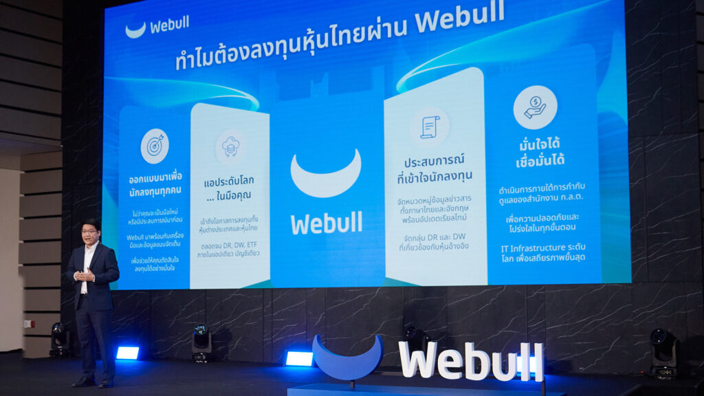 บริษัทหลักทรัพย์ วีบูลล์ (ประเทศไทย) จำกัด หรือ “Webull Thailand” เป็นบริษัทย่อยของ Webull Corporation (NASDAQ : BULL) ซึ่งเป็นเจ้าของแพลตฟอร์มเทรดออนไลน์ Webull ได้เปิดตัวฟังก์ชัน “การเทรดหุ้นในตลาดหลักทรัพย์แห่งประเทศไทย” อย่างเป็นทางการแล้ว ในฐานะบริษัทสมาชิกหมายเลข 9 เพื่อประกอบธุรกิจนายหน้าซื้อขายหลักทรัพย์ ณ อาคารตลาดหลักทรัพย์แห่งประเทศไทย ซึ่งเป็นการเปิดโอกาสให้ผู้ใช้งานแอปพลิเคชัน Webull สามารถเทรดหุ้นไทย หรือแม้แต่กองทุน ETFs ตราสารแสดงสิทธิในหลักทรัพย์ต่างประเทศ (Depositary Receipt : DR) ใบสำคัญแสดงสิทธิอนุพันธ์ (Derivative Warrants : DW) และวอร์แรนท์ (Warrant) ได้ พร้อมกับการประกาศมอบสิทธิประโยชน์พิเศษสำหรับลูกค้าเพิ่มเติมถึง 2 ต่อ