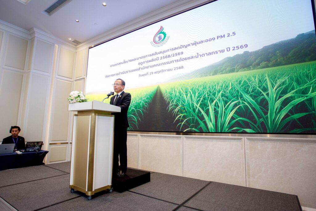 “นอกจากนี้ ที่ประชุมคณะกรรมการอ้อยและน้ำตาลทราย (กอน.) เมื่อวันที่ 18 พฤศจิกายน 2568 มีมติเห็นชอบวันเปิดหีบอ้อยของ 58 โรงงานน้ำตาลทั่วประเทศ ฤดูการผลิตปี 2568/2569 ซึ่งแบ่งกลุ่มตามเปอร์เซ็นต์โรงงานน้ำตาลรับอ้อยเผาเข้าหีบ ในฤดูการผลิตปี 2567/2568 ออกเป็น 4 กลุ่ม คือ กลุ่ม 1 : อ้อยเผาเข้าหีบน้อยกว่าหรือเท่ากับ 5.00% เปิดหีบอ้อยตั้งแต่วันที่ 1 ธันวาคม 2568 กลุ่ม 2 : อ้อยเผาเข้าหีบตั้งแต่ 5.01% – 15.00% เปิดหีบอ้อยตั้งแต่วันที่ 6 ธันวาคม 2568 กลุ่ม 3 : อ้อยเผาเข้าหีบตั้งแต่ 15.01% – 25.00% เปิดหีบอ้อยตั้งแต่วันที่ 8 ธันวาคม 2568 และกลุ่ม 4 : อ้อยเผาเข้าหีบตั้งแต่ 25.01% ขึ้นไป เปิดหีบอ้อยตั้งแต่วันที่ 11 มกราคม 2569 และ กอน. ยังได้เห็นชอบการกำหนดราคาอ้อยขั้นสุดท้ายและผลตอบแทนการผลิตและจำหน่ายน้ำตาลทราย