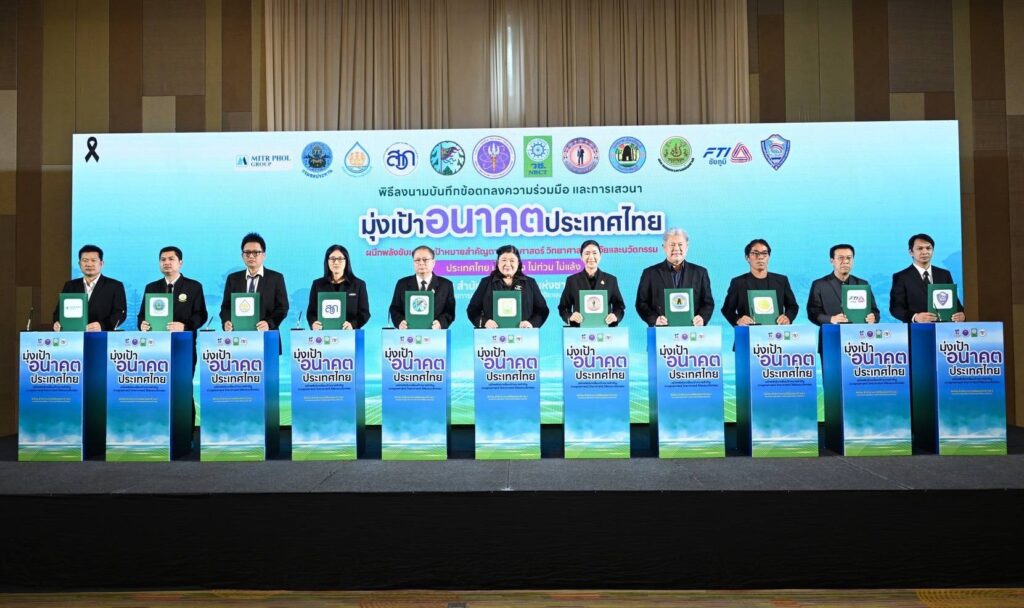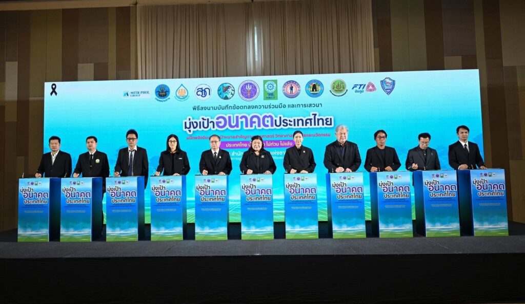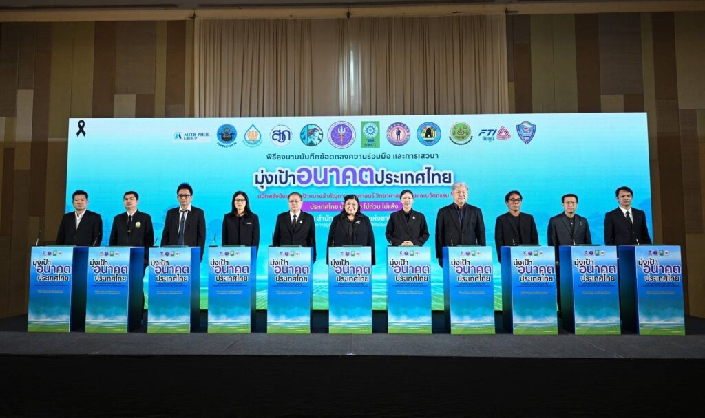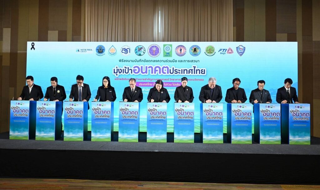 วันที่ 19 พฤศจิกายน 2568 สำนักงานการวิจัยแห่งชาติ(วช.) กระทรวงการอุดมศึกษา วิทยาศาสตร์ วิจัยและนวัตกรรม ร่วมกับ จังหวัดขอนแก่น และภาคีเครือข่ายในพื้นที่ จัดพิธีลงนามบันทึกข้อตกลงความร่วมมือกิจกรรม “มุ่งเป้าอนาคตประเทศไทย น้ำมั่นคง ไม่ท่วม ไม่แล้ง” เพื่อขับเคลื่อนเป้าหมายสำคัญตามยุทธศาสตร์ ววน. โดยมี ดร.วิภารัตน์ ดีอ่อง ผู้อำนวยการสำนักงานการวิจัยแห่งชาติ เป็นประธานในพิธี กล่าวเปิดงานและร่วมลงนาม พร้อมด้วย นางสาวเสาวนีย์ มุ่งสุจริตการ รองผู้อำนวยการสำนักงานการวิจัยแห่งชาติ และคณะผู้บริหาร วช. เข้าร่วมในงาน นอกจากนี้ยังมี นายพันธ์เทพ เสาโกศล รองผู้ว่าราชการจังหวัดขอนแก่น นายธงชัย โอฬารพัฒนะชัย รองผู้ว่าราชการจังหวัดชัยภูมิ รวมถึงหน่วยงานภาครัฐ ภาคเอกชน และภาคประชาสังคม จากจังหวัดขอนแก่นและจังหวัดชัยภูมิ กว่า 16 หน่วยงาน เข้าร่วมลงนามและร่วมแสดงเจตนารมณ์ในการขับเคลื่อนความร่วมมือดังกล่าว ณ โรงแรมพูลแมน ขอนแก่น ราชา ออคิด จังหวัดขอนแก่น