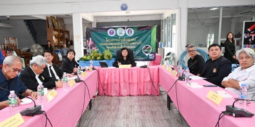 วันที่ 19 พฤศจิกายน 2568 สำนักงานการวิจัยแห่งชาติ (วช.) กระทรวงการอุดมศึกษา วิทยาศาสตร์ วิจัยและนวัตกรรม นำโดย ดร.วิภารัตน์ ดีอ่อง ผู้อำนวยการสำนักงานการวิจัยแห่งชาติ พร้อมด้วย รองศาสตราจารย์ ดร.สุจริต คูณธนกุลวงศ์ ผู้อำนวยการแผนงานฯ (Program Director) คณะผู้ทรงคุณวุฒิ ผู้บริหาร และทีมนักวิจัย ลงพื้นที่จังหวัดขอนแก่นเพื่อติดตามความคืบหน้าการดำเนินงานโครงการด้านการบริหารจัดการน้ำในพื้นที่จริง ภายใต้แผนงานวิจัย “น้ำมั่นคง ไม่ท่วม ไม่แล้ง ใน 10 จังหวัด” และแผนงานวิจัยมุ่งเป้าการแก้ปัญหาน้ำอย่างยั่งยืน โดยเน้นการนำงานวิจัยและนวัตกรรมไปใช้แก้ไขปัญหาในระดับพื้นที่อย่างเป็นรูปธรรม