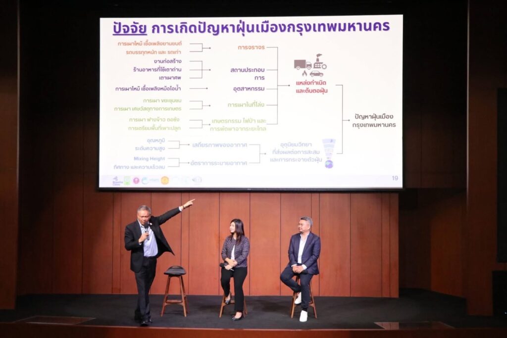 ภายในงานยังมีการสัมมนาทางวิชาการในหัวข้อ “ปัจจัยสำคัญในการแก้ไขปัญหาฝุ่นเมือง ช่องว่าง และข้อค้นพบ ผ่านแผนปฏิบัติการแก้ไขปัญหาฝุ่น PM2.5 ในพื้นที่กรุงเทพมหานคร ปี 2569” โดย รองศาสตราจารย์ ดร.สุรัตน์ บัวเลิศ รองศาสตราจารย์ ดร.ภาคภูมิ ชูมณี และผู้ช่วยศาสตราจารย์ ดร.ธัญภัสสร์ ทองเย็น คณะสิ่งแวดล้อม มหาวิทยาลัยเกษตรศาสตร์ ซึ่งได้สะท้อนประเด็นเชิงลึกเกี่ยวกับปัจจัยที่ส่งผลต่อสถานการณ์ฝุ่นละอองในพื้นที่กรุงเทพมหานคร ข้อจำกัดของมาตรการที่ผ่านมา และแนวทางเชิงนโยบายที่ควรได้รับการผลักดันอย่างเป็นรูปธรรม