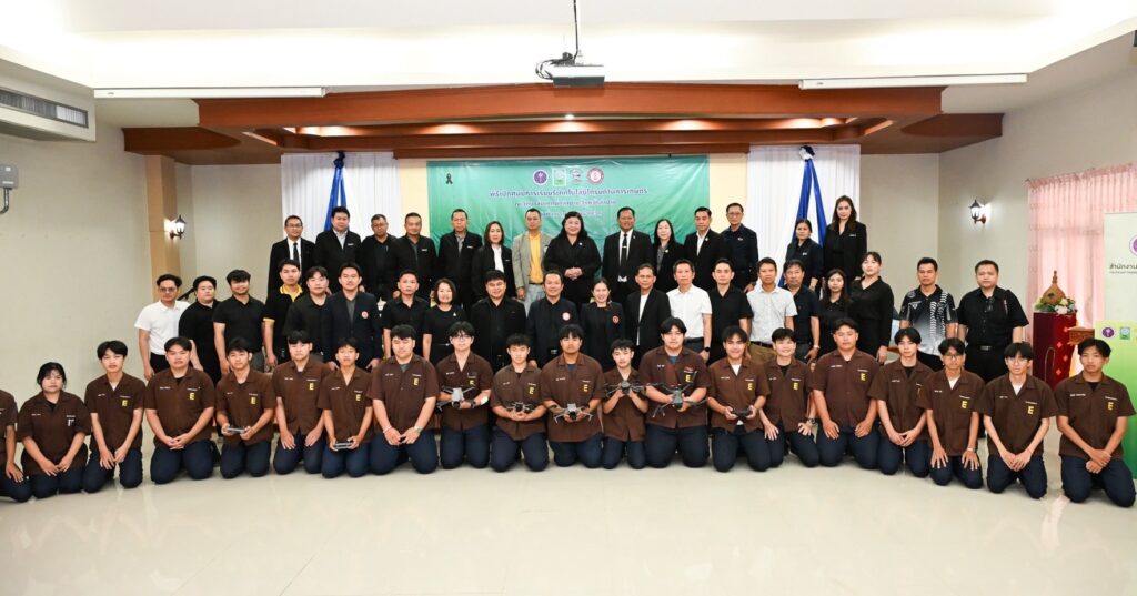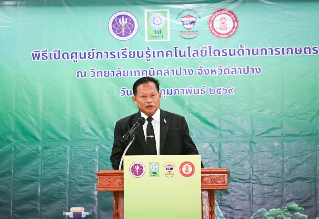 วันที่ 22 กุมภาพันธ์ 2569 สำนักงานการวิจัยแห่งชาติ(วช.) กระทรวงการอุดมศึกษา วิทยาศาสตร์ วิจัยและนวัตกรรม ร่วมกับ สมาคมกีฬาเครื่องบินจำลองและวิทยุบังคับ จัด “พิธีเปิดศูนย์การเรียนรู้เทคโนโลยีโดรนด้านการเกษตร” โดย ดร.วิภารัตน์ ดีอ่อง ผู้อำนวยการสำนักงานการวิจัยแห่งชาติ เป็นประธานในพิธี พร้อมด้วย นายพิศิษฐ์ มิตรเกื้อกูล นายกสมาคมกีฬาเครื่องบินจำลองและวิทยุบังคับ กล่าวรายงาน, นายณัฐนนท์ ภู่อริยพงศ์ ผู้อำนวยการวิทยาลัยเทคนิคลำปาง กล่าวต้อนรับ, นางสาวศิรินทร์พร เดียวตระกูล รองผู้อำนวยการสำนักงานการวิจัยแห่งชาติ และผู้ทรงคุณวุฒิ วช. เข้าร่วมในพิธี ณ วิทยาลัยเทคนิคลำปาง จ.ลำปาง