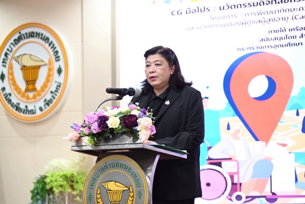 ผู้ช่วยศาสตราจารย์ ดร.สุภารัตน์ วังศรีคูณ คณบดีคณะพยาบาลศาสตร์ มหาวิทยาลัยเชียงใหม่ กล่าวว่า คณะพยาบาลศาสตร์ตระหนักถึงความจำเป็นในการเตรียมความพร้อมรองรับสังคมสูงวัย จึงร่วมกับภาคีเครือข่ายและหน่วยงานท้องถิ่น ดำเนินโครงการพัฒนาทักษะความรอบรู้ด้านสุขภาพโดยใช้เทคโนโลยีสำหรับผู้ดูแลผู้สูงอายุอย่างต่อเนื่องและเป็นรูปธรรม การดำเนินงานครอบคลุมตั้งแต่การพัฒนาโจทย์วิจัยที่สอดคล้องกับบริบทท้องถิ่น การกำกับติดตามคุณภาพงานวิชาการ ไปจนถึงการผลักดันผลการวิจัยสู่การใช้ประโยชน์ทั้งในระดับชุมชนและเชิงนโยบาย ส่งผลให้เกิดรูปแบบการดูแลผู้สูงอายุที่สามารถนำไปปรับใช้ได้จริง และมีศักยภาพในการขยายผลอย่างต่อเนื่องในอนาคต