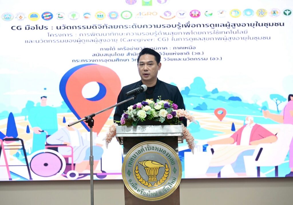 รองศาสตราจารย์ ดร.ยุทธนา พิมลศิริผล ประธานเครือข่ายวิจัยภูมิภาค : ภาคเหนือ กล่าวว่า การจัดกิจกรรม ”CG มือโปร“ ในวันนี้ เป็นกิจกรรมสำคัญภายใต้งานของเครือข่ายวิจัยภูมิภาค: ภาคเหนือ เกิดจากความร่วมมือระหว่างคณะพยาบาลศาสตร์ มหาวิทยาลัยเชียงใหม่ หน่วยงานภาครัฐ หน่วยงานท้องถิ่น และชุมชน ในการร่วมกันขับเคลื่อนการพัฒนาระบบการดูแลผู้สูงอายุในระดับพื้นที่อย่างเป็นรูปธรรม ภาคเหนือโดยเฉพาะจังหวัดเชียงใหม่ก้าวเข้าสู่สังคมผู้สูงอายุอย่างชัดเจน การพัฒนาศักยภาพผู้ดูแลในชุมชน และการนำองค์ความรู้กับเทคโนโลยีมาประยุกต์ใช้ จึงเป็นภารกิจสำคัญที่ต้องขับเคลื่อนอย่างเป็นระบบ เครือข่ายวิจัยภูมิภาค : ภาคเหนือ จึงได้สนับสนุนโครงการที่เชื่อมโยงงานวิจัยสู่การปฏิบัติจริง ผ่านการพัฒนาทักษะผู้ดูแล การใช้เครื่องมือดิจิทัล เช่น แอปพลิเคชัน Caregiver 4.0 และการสร้างกระบวนการเรียนรู้ร่วมกันของภาคีเครือข่าย การดำเนินงานนี้ไม่เพียงยกระดับความรู้ของผู้ดูแล แต่ยังเสริมความเข้มแข็งของเครือข่ายในพื้นที่ เพื่อขยายผลองค์ความรู้สู่ชุมชนอื่นอย่างเป็นรูปธรรม